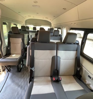Ideal for larger families, two small families traveling together, or groups of friends, offering comfortable seating and space for luggage.